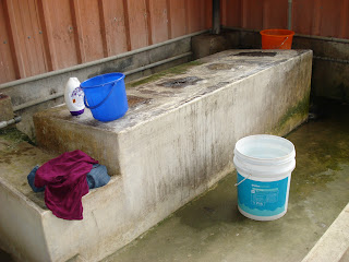 Jetzt bin ich schon ein paar Tage hier und da fällt auch so die ein oder andere Schmutzwäsche an. In Deutschland ist es ja recht einfach: Wäsche nach Farben aufteilen, in den Wäschekorb, danach in die Waschmaschine, Waschmittel dazu geben, Waschmaschine anstellen, entsprechendes Programm auswählen, Startknopf drücken, warten bis die Wäsche fertig geschleudert ist und danach einfach aufhängen. Klingt einfach, ist es auch. Auch wenn sich manche Männer hierbei gerne etwas dumm stellen. ;)